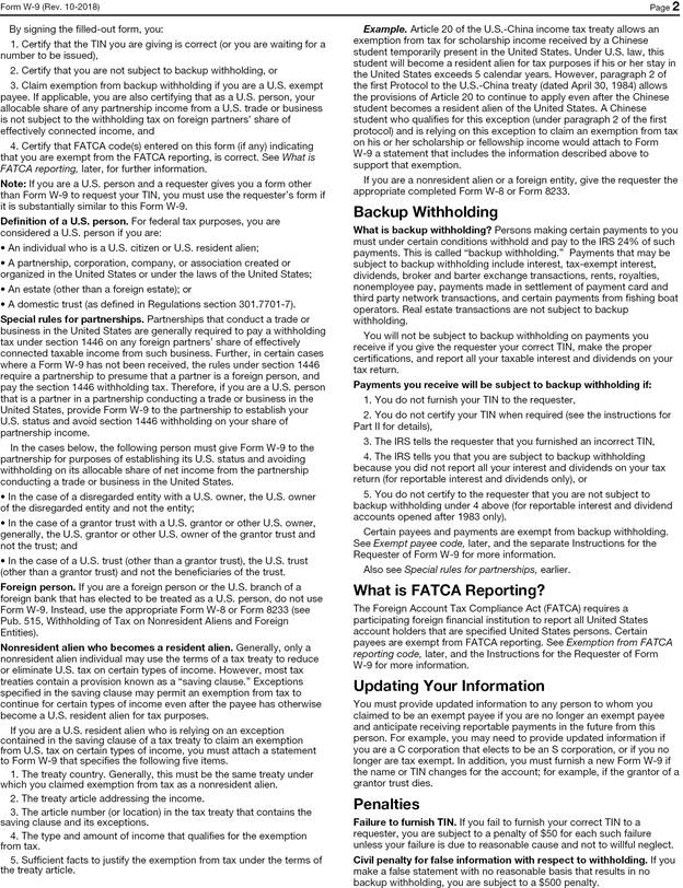 (See IRS Form W-9 below)