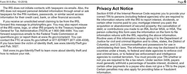 9. IRS Form W-9, IRS Form W-8. Each holder who is a Holder (as defined in Section 13 of the Offer to Purchase) surrendering certificates for payment is required to provide the Depositary with a correct Taxpayer Identification Number (“TIN”) on IRS Form W-9 (provided herein) and certify under penalties of perjury that such number is correct and indicate whether such holder is subject to backup withholding as provided in the certification instructions in the form. Each holder must date and sign the IRS Form W-9 in the spaces indicated. Failure to provide the information on the form may subject the holder to federal income tax withholding on the Offer Price and to a penalty imposed by the Internal Revenue Service. If the holder has not been issued a TIN and has applied for a number, the holder should write “Applied For” in the space for the TIN and sign and date the IRS Form W-9 in the spaces indicated. If the IRS Form W-9 is so completed, the Depositary will withhold 24% of all reportable payments that the holder is otherwise entitled to receive until a TIN is provided to the Depositary. If the holder provides a properly certified TIN within 60 days, the Depositary will refund the withheld taxes upon the holder’s request. Each holder who is not a U.S. Holder (as defined in Section 13 of the Offer to Purchase) must complete and submit the applicable IRS Form W-8 in order to be exempt from the federal income tax backup withholding due on payments with respect to the Company Shares. The appropriate IRS Form W-8 may be obtained from the Information Agent and the Depositary. Shareholders that are not U.S. Holders are urged to consult their tax advisor regarding the appropriate IRS Form W-8 in their particular circumstances.