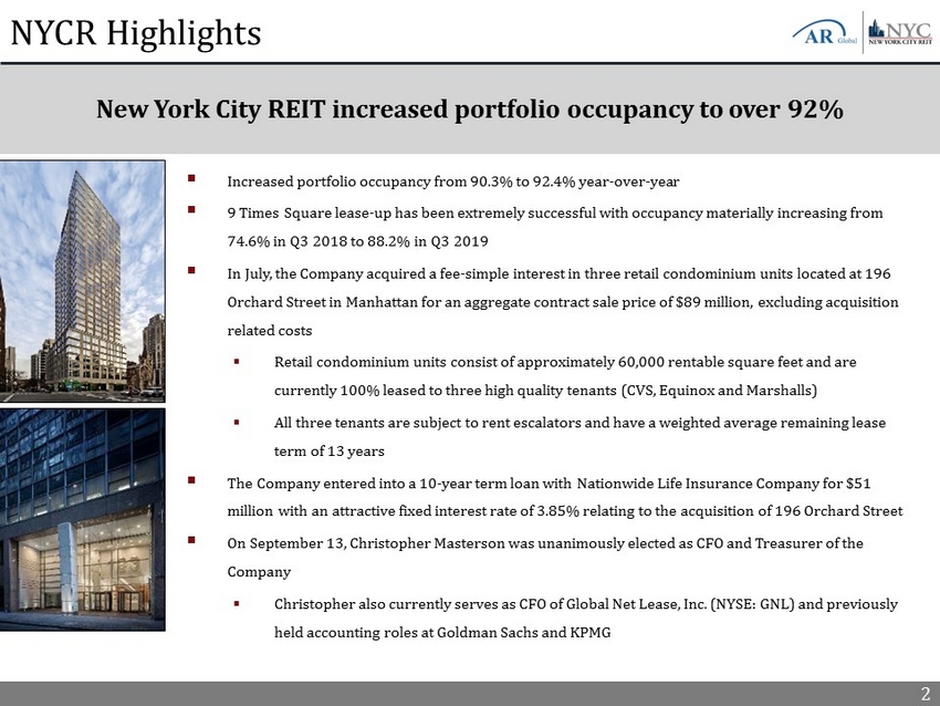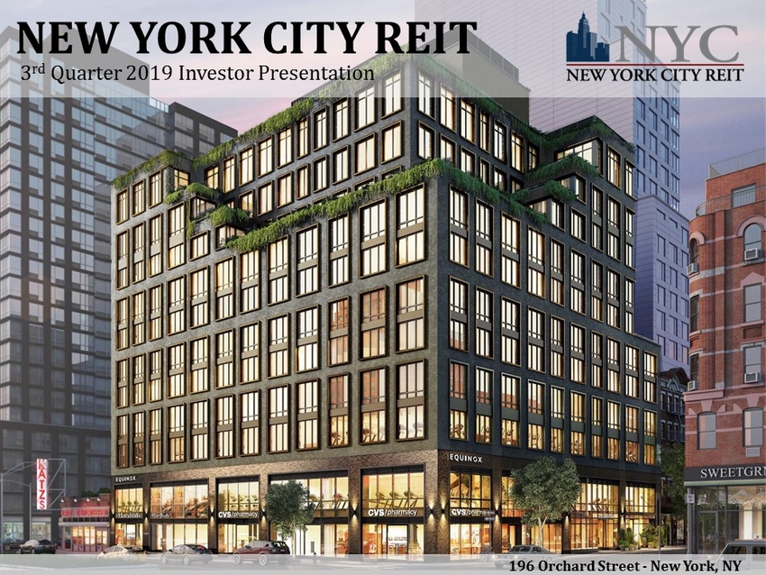 NEW YORK CITY REIT 3 rd Quarter 2019 Investor Presentation 196 Orchard Street - New York, NY
