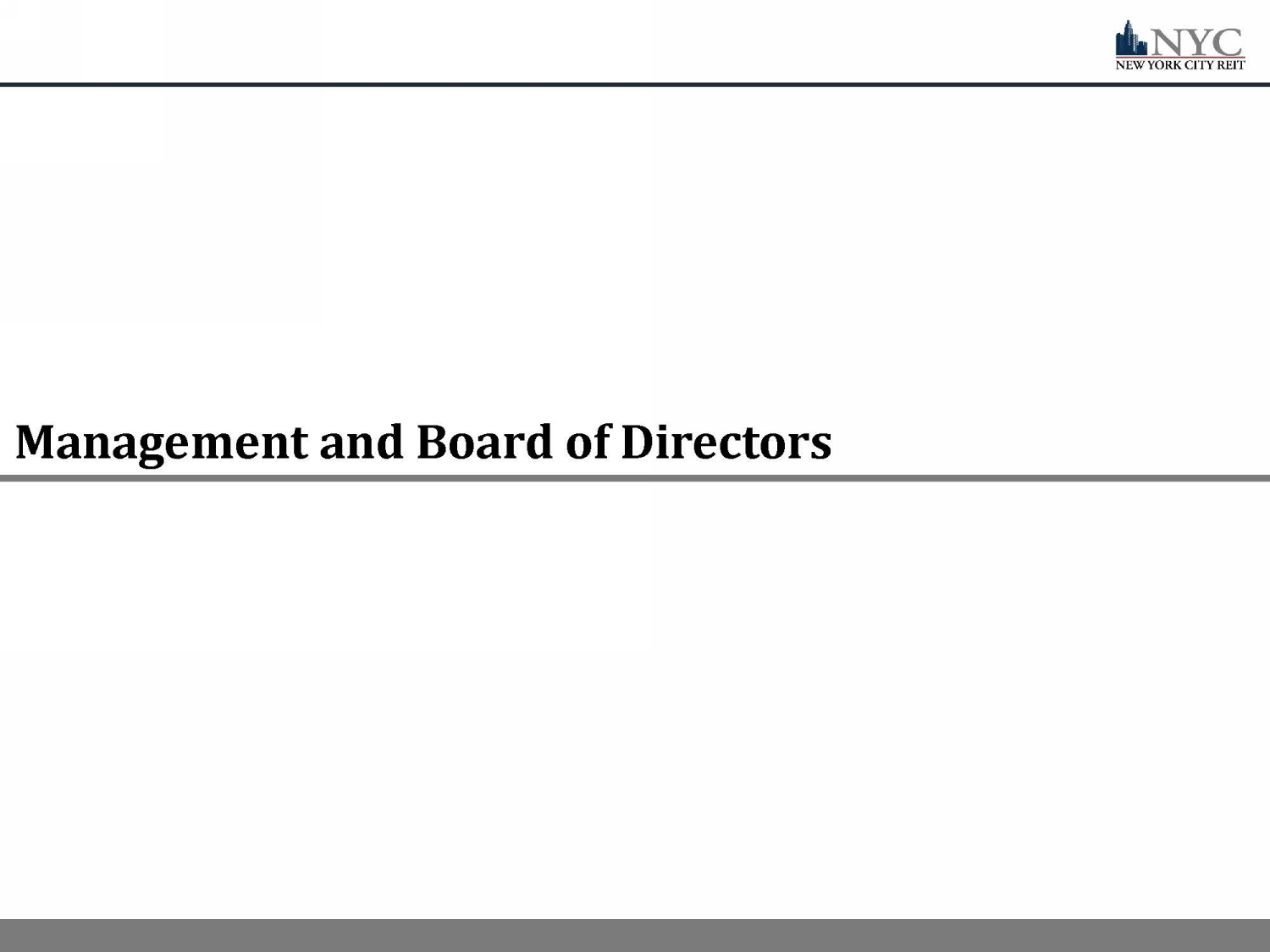 18 18 Board of Directors Michael Weil | Director and Executive Chairman ▪ Founding partner of AR Global ▪ Formerly, Mr. Weil served as Executive Vice President of AR Capital, where he supervised the origination of investment opportunities for all AR Capital - sponsored investment programs ▪ Prior to the establishment of AR Capital, Mr. Weil served as Senior Vice President of Sales and Leasing for American Financial Realty Trust (AFRT), where he was responsible for the disposition and leasing activity for an approximately 30 million square foot portfolio ▪ Served as president of the Board of Directors of the Real Estate Investment Securities Association (n/k/a ADISA) Lee Elman | Independent Director and Audit Committee Chairman ▪ Independent director of the Company since February 2016 ▪ Founder & President of Elman Investors Inc., an international real - estate investment bank ▪ 40+ years of real estate investment experience in the US and abroad ▪ Mr. Elman holds a J.D. from Yale Law School and a B.A. from Princeton University’s Woodrow Wilson School of Public and International Affairs Abby Wenzel | Independent Director ▪ Ms. Wenzel was a member of the law firm of Cozen O’Conner, resident in the New York Office from April 2009 until her retirement in June 2019. Ms. Wenzel practiced in in the Real Estate Group and capital markets practice area, focusing on capital markets, finance and sale leaseback transactions ▪ Prior to joining Cozen O’Connor, Ms. Wenzel was a partner with Wolf Block, LLP, managing partner of its New York office and chair of its structured finance practice from October 1999 until April 2009 Elizabeth Tuppeny | Lead Independent Director ▪ Chief Executive Officer and founder of Domus, Inc., since 1993 ▪ 30 years of experience in the branding and advertising industries, with a focus on Fortune 500 companies ▪ Ms. Tuppeny also founded EKT Development, LLC to pursue entertainment projects in publishing, feature film and education video games Strong Corporate Governance x Majority independent Board of Directors, with additional oversight provided by committees comprised solely of independent directors x PricewaterhouseCoopers LLP currently acts as the independent auditor for NYC x NYC is supported by robust financial accounting and reporting teams, and maintains financial reporting processes, controls and procedures x Management and shareholders fully aligned to compensate based on operational outperformance x NYC’s independent board members and the Advisor and its affiliates have each separately demonstrated its depth of commitment to NYC’s long - term value by increasing ownership in NYC. As of May 1 st 2022, NYC’s independent board members owned over 57,000 shares of NYC and separately, NYC’s Advisor and its affiliates owned over 1,500,000 shares of NYC