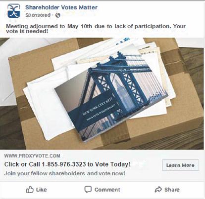 Your participation is important and your vote today will help the company convene the adjourned meeting on May 10th, avoid additional costs associated with any further adjournments and will stop the communications to you about the vote.