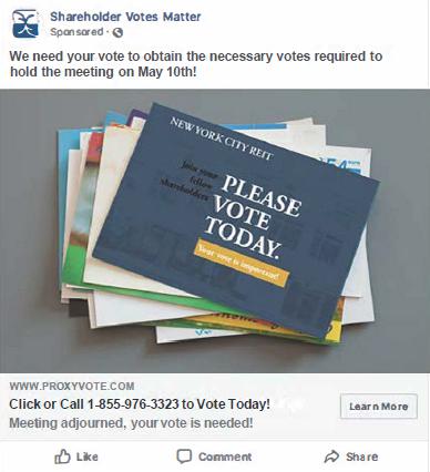 This year’s proxy includes only the election of Elizabeth K. Tuppeny as the Class II director to serve until the 2022 Annual Meeting and the ratification of the appointment of PricewaterhouseCoopers LLP as NYCR’s independent registered public accounting firm for the year ending December 31, 2019.
