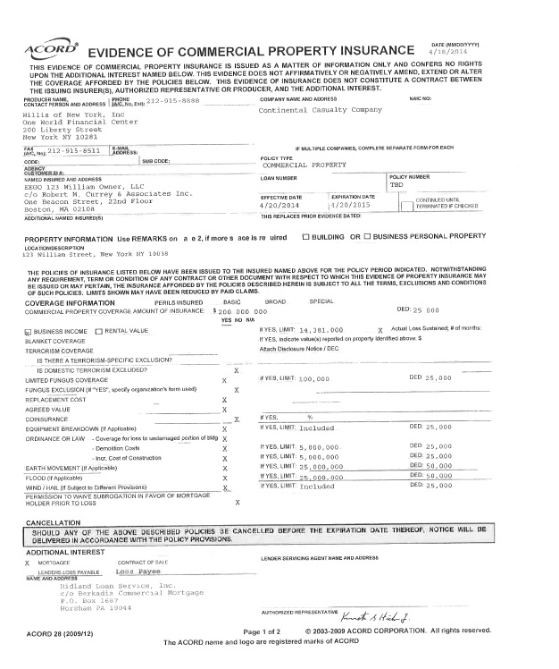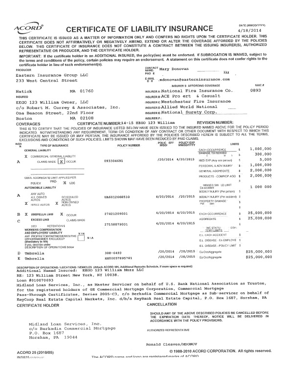 EEGO 123 William Owner, LLC 600 Madison Ave, 11th floor New York, New York 10022 Attention: Adam L. Pogoda
